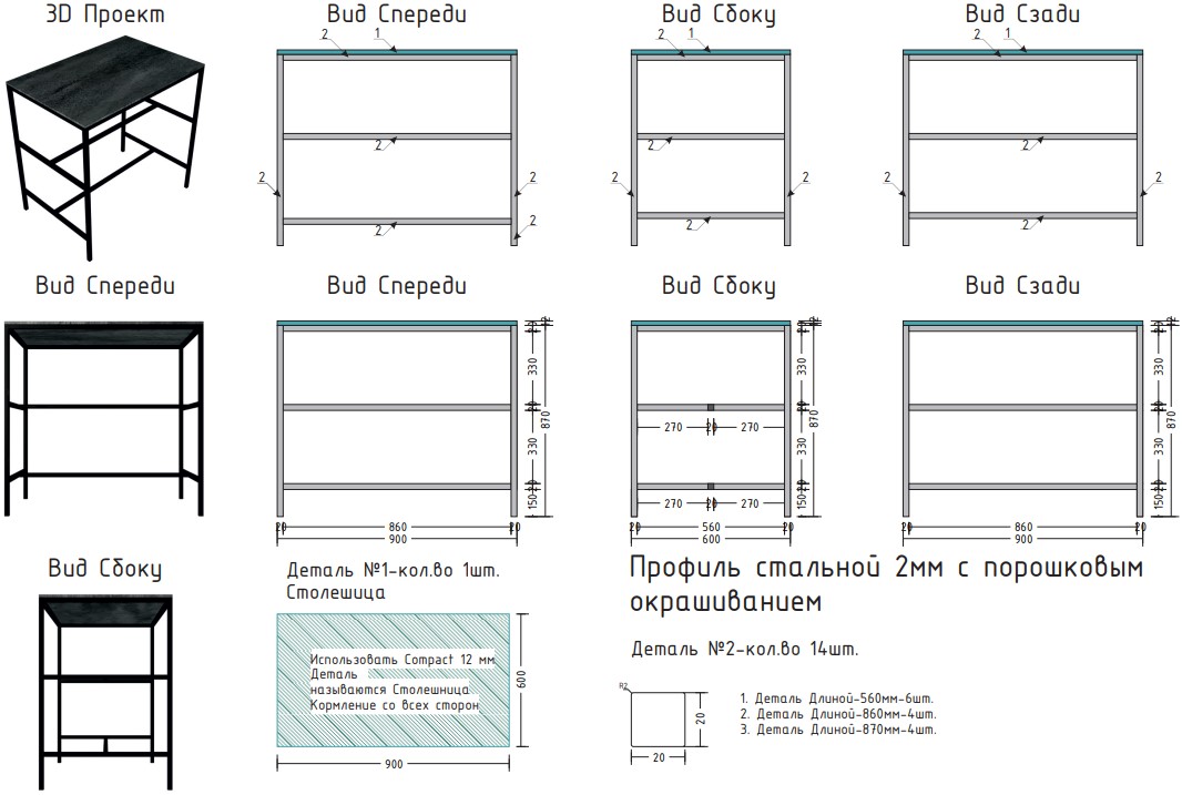Выполнена из стального профиля черного цвета с порошковым покрытием, которое обеспечивает устойчивость к появлению коррозии и перепадам температуры.